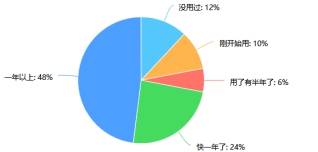 从图中可以得出:在被调查的人员中,绝大多数的人使用打车软件接近一年甚至更久,少数被调查者也有用了半年年或刚开始用的,说明现在打车软件已经渐渐融入人们的生活。
